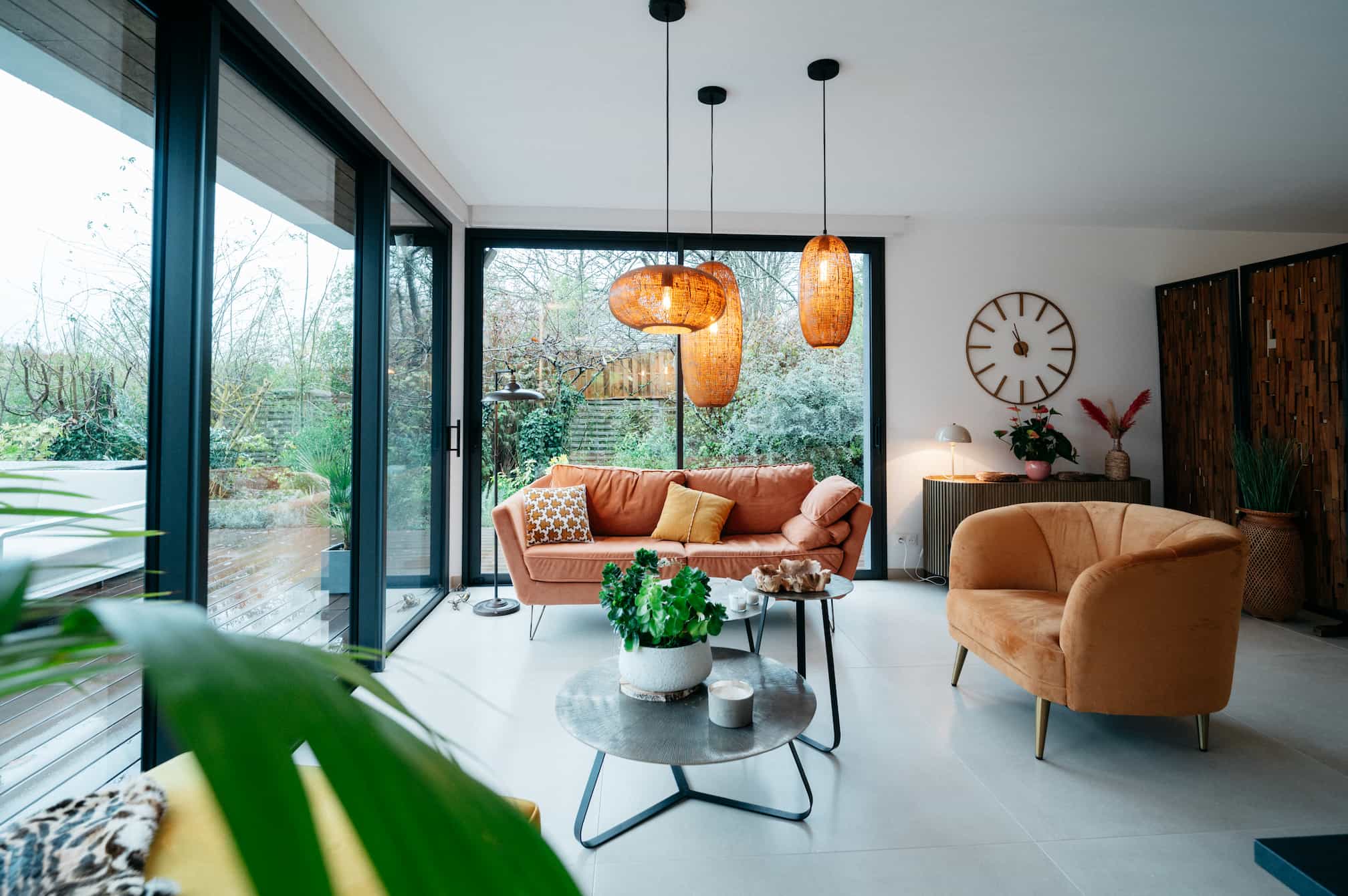 Sur ce projet, tout est parti d’une idée très simple : ouvrir la maison sur le jardin. Et même un peu plus que ça : placer la maison au cœur du jardin ! Depuis le salon, la cuisine ou la chambre, la vue sur la verdure est toujours là. Ça se traduit comment ?