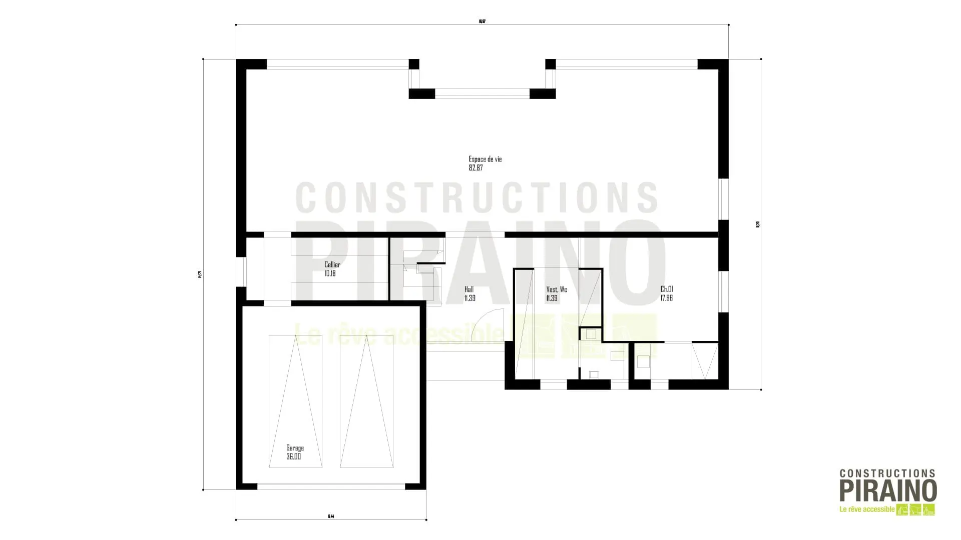 Ce couple rêvait d’une maison familiale et personnalisée pour accueillir confortablement ses enfants. Les constructions Piraino ont étudié le projet et l’ont réalisé selon leurs espérances. En observant l’architecture de ce joli pavillon situé à Lillers, on devine l’inspiration contemporaine et régionale de Piraino. Le mélange de matériaux casse les codes du classicisme, tandis que les grandes ouvertures sur la façade optimisent l’ensoleillement des pièces à vivre. Le rez-de-chaussée déploie de beaux volumes comprenant un espace de vie de 82 m², une chambre parentale et un cellier offrant une belle capacité de stockage pour les denrées alimentaires et les appareils électroménagers. Le garage d’une superficie totale de 36 m² peut, quant à lui, accueillir jusqu’à deux véhicules.