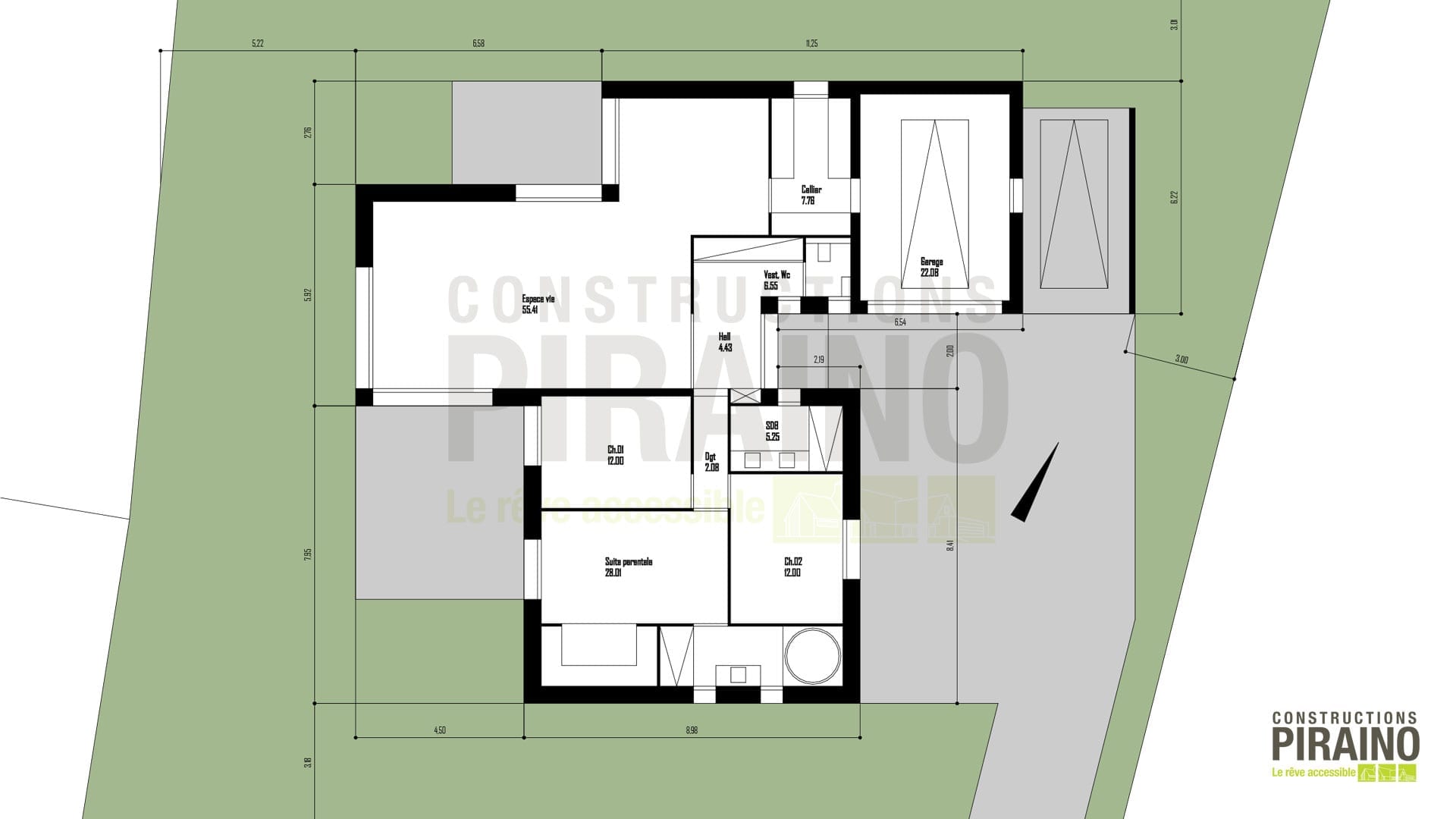Fonctionnalité au quotidien : Un garage de 22,08 m² avec accès direct à la maison via un cellier de 7,78 m².