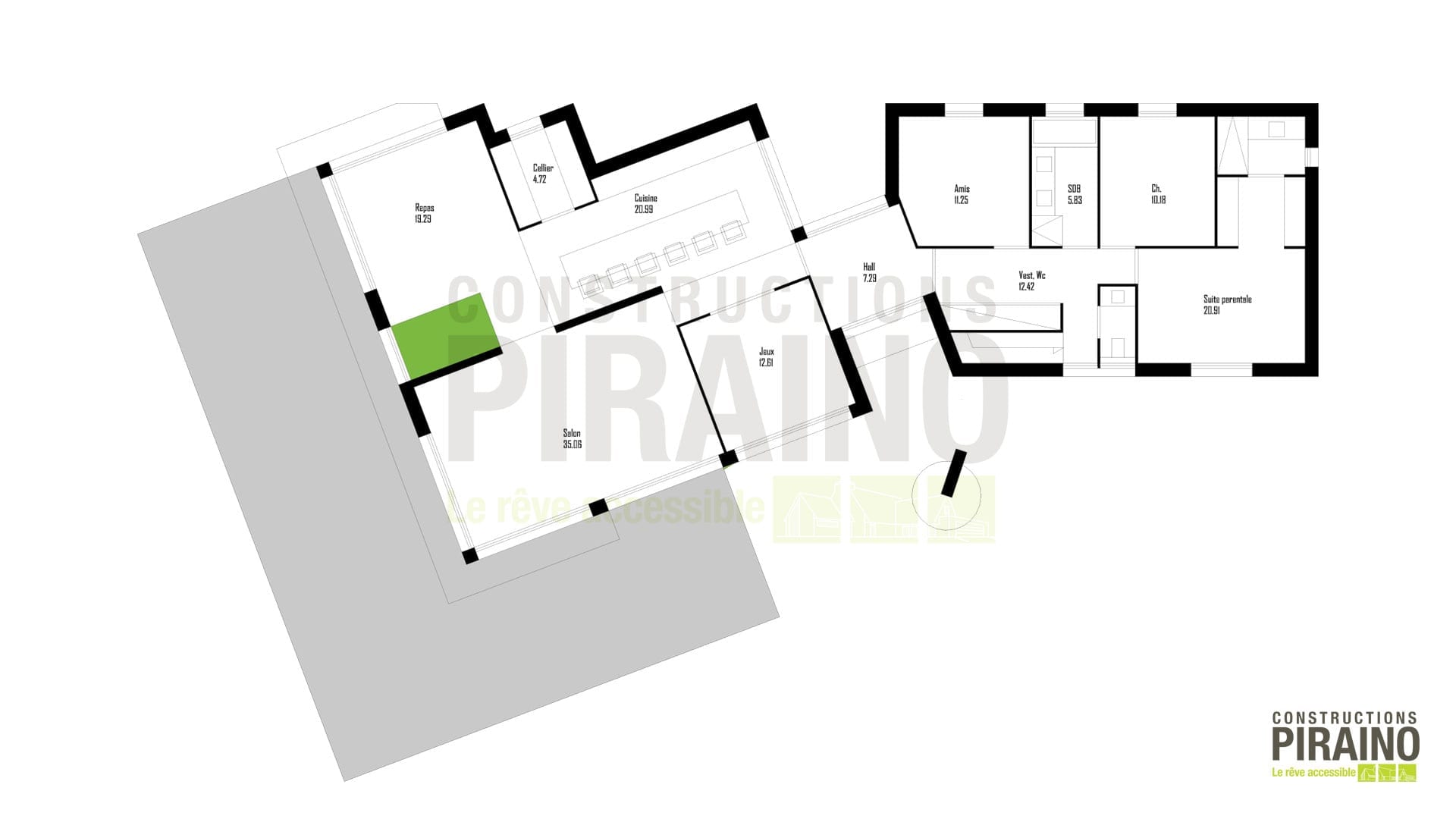 • Le petit plus : Un espace salon de jeux de 12,61 m² au cœur de la maison, idéal pour la vie de famille.